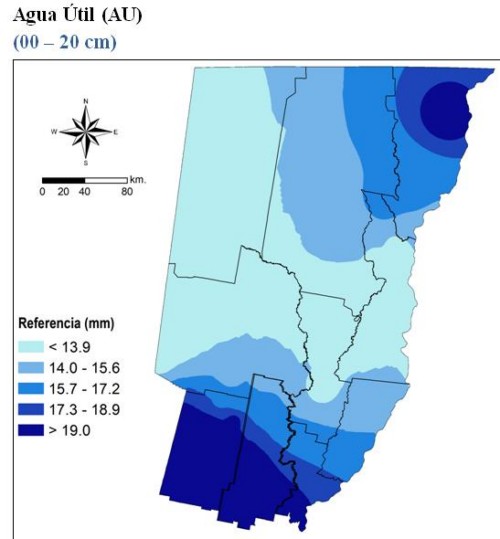 En el resto del área de estudio la disponibilidad de agua es de “regular a buena” (valores que van de 14 a 18,9 cm), hecho que dificulta el normal desarrollo de los cultivos y/o germinación hasta la fecha.