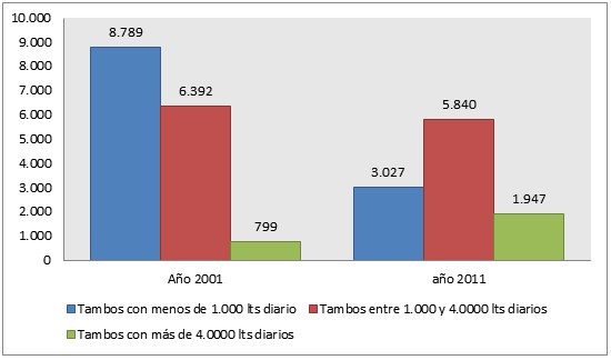 e) De los 5.166 tambos que se liquidaron entre al año 2001 y 2011 (Cuadro 4), la mayor parte fueron de pequeños productores.