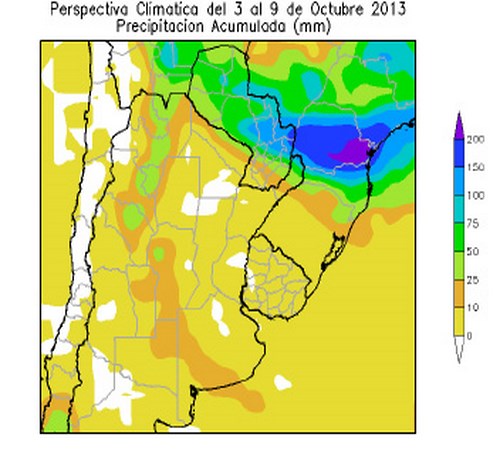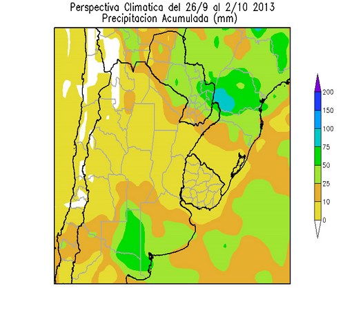 Perspectiva agroclimática del 26 de septiembre al 2 de octubre de 2013: Ascenso térmico y lluvias dispersas, seguidos por una marcada disminución de la temperatura