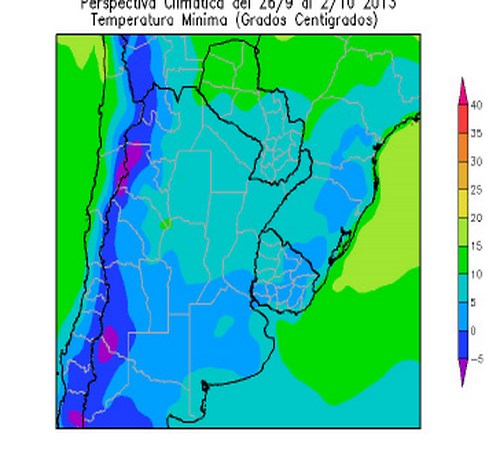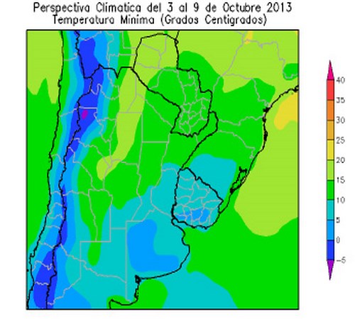 • El norte del sur del Brasil y el noroeste del Paraguay, observarán temperaturas mínimas superiores a 10ºC.