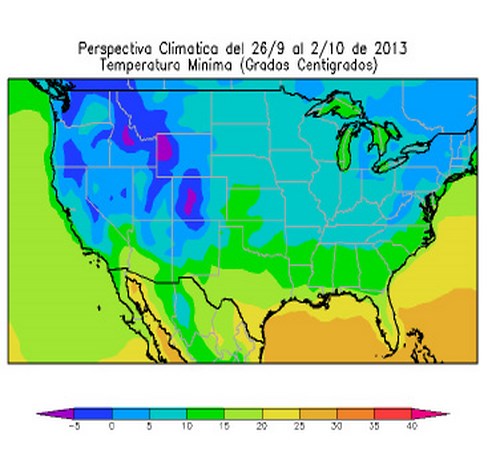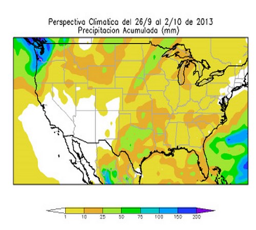 Perspectiva agroclimática para los EE.UU. del 26 de setiembre al 2 de octubre de 2013: precipitaciones escasas y fuerte oscilación térmica
