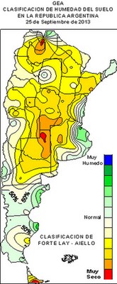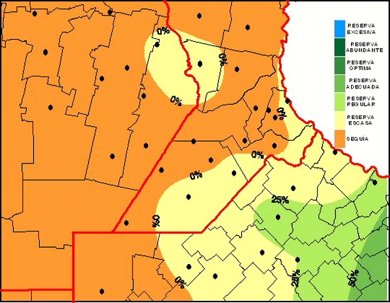 El balance entre las precipitaciones dispares y la evapotranspiración siguen deteriorando las reservas hídricas, especialmente sobre Córdoba y Santa Fe, donde se observan condiciones de sequía en la totalidad del área. Las temperaturas máximas en general fueron levemente menores a los parámetros normales, y las mínimas estuvieron muy por debajo y provocaron heladas intensas en toda la región. Con valores de entre 0 y 3ºC bajo cero y el trigo encañando, hay preocupación por los efectos que pueden haber provocado en los cultivos, sobre todo en los cuadros más adelantados.