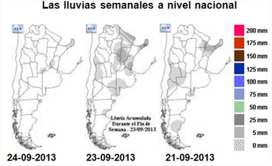 El avance de siembra de maíz, a tres días de cerrar septiembre, es de un 8%. En las zonas donde las lluvias estuvieron por encima de los 10 mm fueron suficientes para sembrar sólo algunos lotes. También las bajas temperaturas de los suelos es un factor más de riesgo para asegurar la emergencia del cultivo. En muchas áreas del oeste de GEA no se ha sembrado un sólo lote de maíz y los lotes están condicionados a que llueva en el corto plazo. Para comenzar se necesitan lluvias por encima de los 30 a 60 mm. De no llover en los próximos días puede haber una nueva caída en el área de intención de maíz.