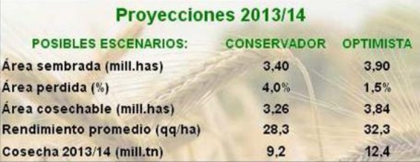 El mercado está muy nervioso porque en gran parte de Santa Fe, Córdoba, NEA y NOA no llueve y las perspectivas de rindes están ajustando. Algunos ya hablan de una producción de menos de 10 millones de toneladas, comentó el analista Iván Barbero. Por eso, las ofertas de trigo enero 2014 se ubican en u$s 250 la tonelada.