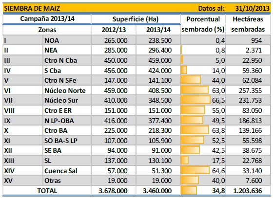 La ventana óptima para implantar maíz de primera ha finalizado, sin haber logrado cubrir el 100 % de la superficie proyectada para esta campaña. De este modo, el productor trasladaría esa superficie remanente a fechas tardías de diciembre, como también podría diferir parte de esta al cultivo de soja. No hay que descartar la posibilidad de que, luego de estas lluvias, algunos productores se animen a incorporar algunos lotes más antes de pasar a las siembras de diciembre.
