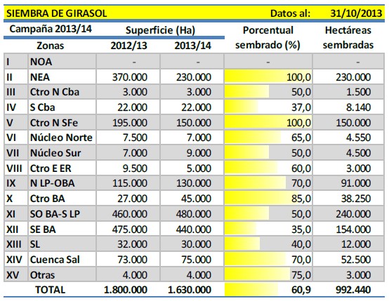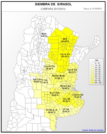 La buena oferta hídrica en superficie registrada sobre la región bonaerense, permite avanzar rápido con las labores de siembra en los importantes núcleos productivos ubicados en esta provincia. Al presente informe la siembra nacional logró cubrir el 60,9 % de la superficie aún proyectada en 1.630.000 hectáreas, reflejando un importante progreso intersemanal de 14,3 % y permitiendo calcular ahora un adelanto interanual de 6,4 puntos porcentuales.
