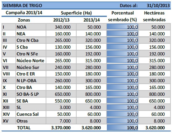Las vecinas regiones Núcleo Sur y Oeste de Buenos Aires y Norte de La Pampa, si bien se vieron afectadas por las bajas temperaturas y la falta de precipitaciones durante la fase vegetativa e inicio de la reproductiva del cultivo, hoy se pueden apreciar en mejores condiciones que las regiones recién descriptas gracias a las precipitaciones que acumularon durante las últimas semanas. Es decir, pese a las adversidades climáticas que sufrió el cultivo las mermas de rendimiento no serán tan drásticas gracias a la recuperación hídrica que registraron dichas regiones.