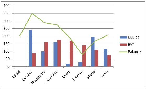 Gráfico 1: Precipitaciones, evapotranspiración potencial y balance hídrico