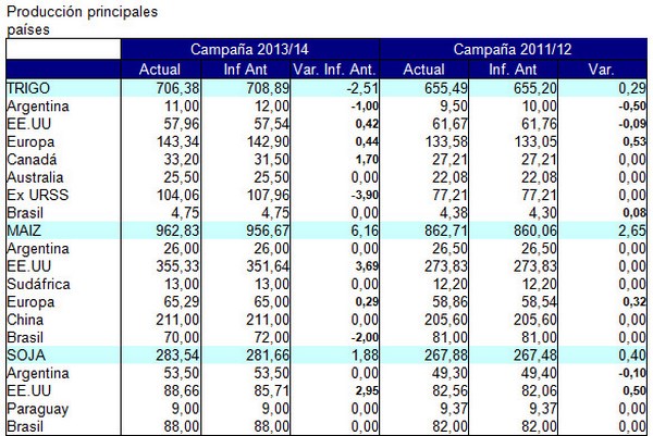 En cuanto a las estimaciones para otros países, en trigo es para destacar la caída de casi 4 M/Tns. en la producción de Europa del Este que absorbe las subas en otros países, haciendo que la producción total baje en 2,5 M/Tns.