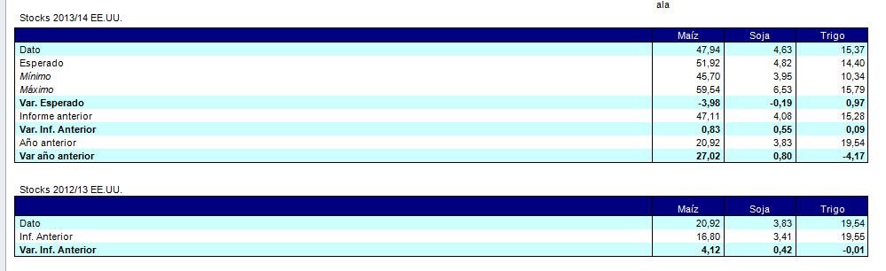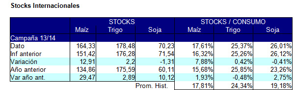 En cuanto a stocks internacionales los mismos subieron para maíz y trigo y bajaron para soja.