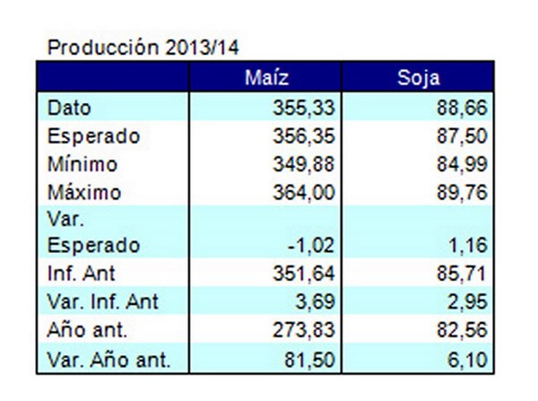 En cuanto a los rindes de soja, los mismos subieron 1,2 quintales por hectárea (qq/Ha.), es decir, casi medio quintal más de lo que esperaban los analistas. Dado que se produjo un ajuste a la baja del área cosechable de 280.000 Has. a producción se incrementó en 3 M/Tns., quedando de todas formas por encima de lo esperado por el mercado por algo más de 1 M/Tn.