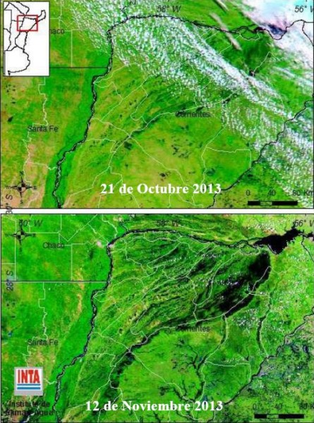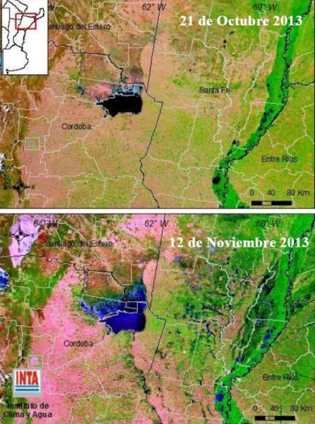 Las últimas lluvias tuvieron un notorio impacto en varias regiones del noreste de la región Pampeana y sobre el NEA. Luego de estas lluvias se observó un marcado avance hacia el norte de la extensión ocupada por la laguna de Mar Chiquita, que durante los últimos años por escasez de precipitaciones había tenido una reducción del espejo de agua en su zona norte y la consecuente aparición del suelo salino que normalmente está cubierto por la laguna. Sobre el centro-norte de Santa Fe, bajos y bañados cubiertos con espejos de agua predominan durante el mes de noviembre.
