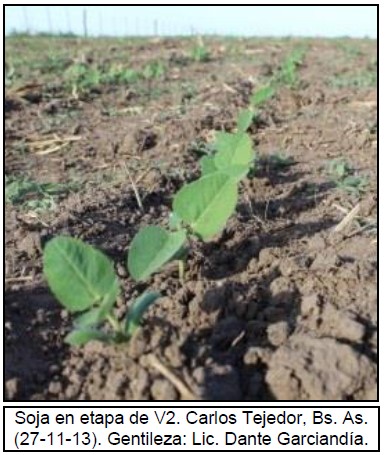 El estado de los lotes implantados en fechas tempranas en la región centro del país hoy es óptimo debido a haber recibido nuevas precipitaciones durante los últimos días. Éstos aún transitan estadíos vegetativos expandiendo de tres a ocho hojas (V3 a V8). En los próximos días comenzarán a implantarse los cuadros de fechas tardías y de segunda ocupación detrás del trigo.