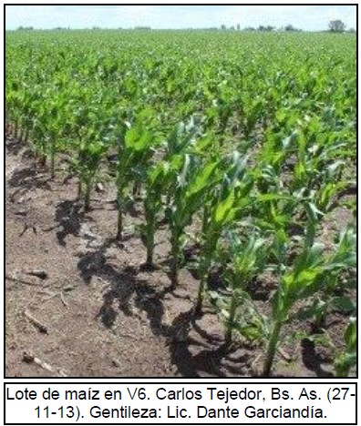 El Oeste y Centro de Buenos Aires, luego de las lluvias registradas en los últimos días, presenta condiciones favorables para los cuadros de maíz que hoy se encuentran transitando las últimas etapas vegetativas. Los primeros lotes sembrados que habían sido afectados por heladas tardías hoy presentan buenas condiciones de cultivo.