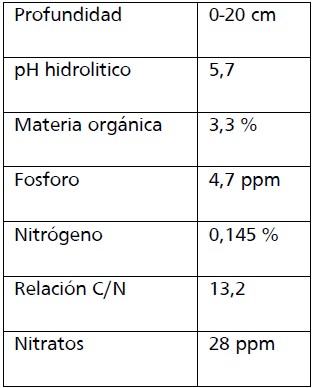 Previo a la siembra se realizó un análisis de suelo (0 – 20 cm) el cual se presenta en el cuadro 1.