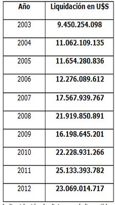 La liquidación de divisas de las empresas del sector en los últimos años fue: