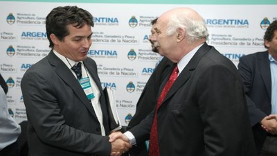 Lucas Ros, representante del Ministro de Campo de San Luis, Federico Berardo, junto al ministro de Agricultura de la Nación, Carlos Casamiquela