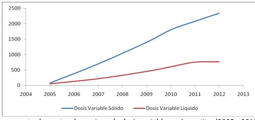 Incremento de ventas de equipos de dosis variable en Argentina (2005 - 2012).