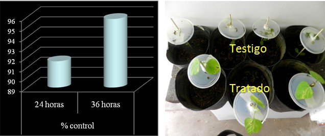 Los resultados fueron contundentes. Las plantas a las que solo se había mojado el tallo controlaron a las larvas que nunca tuvieron contacto directo con el producto y los folíolos en los que estaban no tuvieron nunca producto.