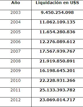La liquidación de divisas de las empresas del sector en los últimos años fue: