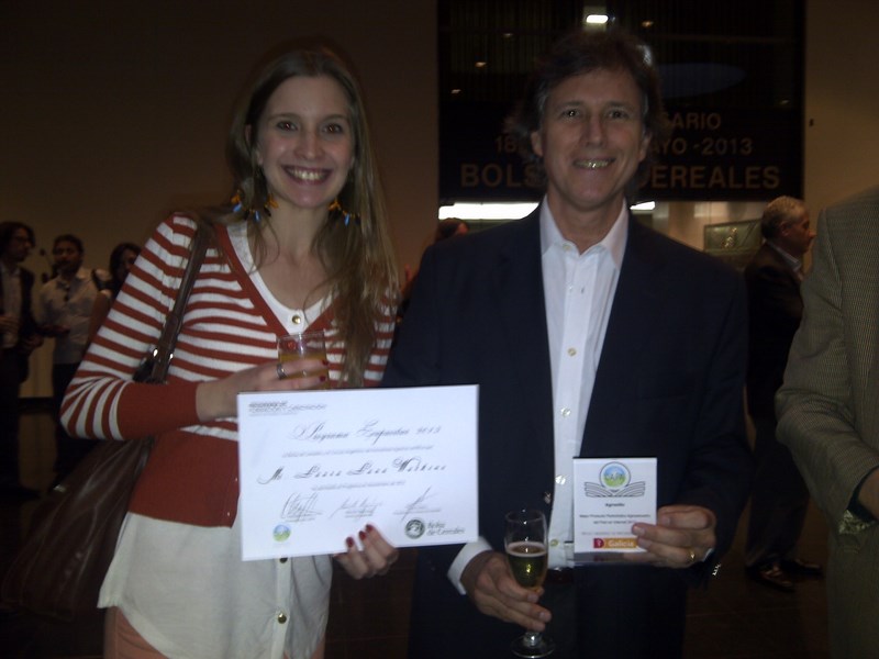 La periodista de Agrositio Ma. Laura Luna Watkins obtuvo su diploma por haber realizado el Programa Capacitar, junto al Director de Agrositio, Ricardo Bindi, con la estatuilla ganada por el Mejor Producto Periodístico Agropecuario del País en Internet
