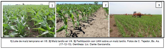 Sobre la franja central del área agrícola nacional, se pueden apreciar muy buenas condiciones en lotes de maíz sembrados en fechas tempranas. La elevada demanda atmosférica, sumada a los altos requerimientos de agua por parte del maíz en estadíos avanzados, hace que hoy éstos se encuentren a la espera de nuevas lluvias que le permitan mantener su estado. Durante los últimos días se registraron lluvias puntuales de moderada a escasa intensidad sobre esta región, con registros de caída de granizo en algunos casos.