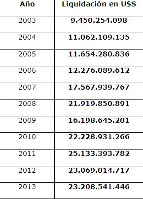 La liquidación de divisas de las empresas del sector en los últimos años fue: