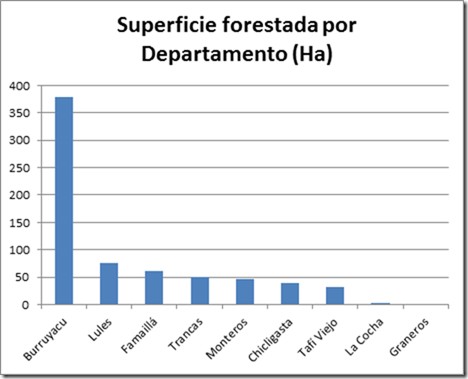 En cuanto a la superficie forestada por departamento, en primer lugar se ubica Burruyacu,