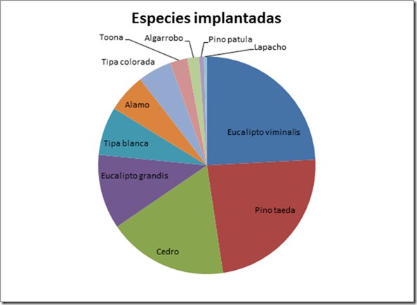 Con respecto a las especies elegidas, las más implantadas en estos años fueron Eucalipto viminalis, Pino taeda, Cedro y Eucalipto grandis.