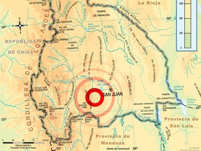 Según informó la agencia Noticias Argentinas (NA), el sismo se produjo a las 5:38 con epicentro en el flanco oeste de la Sierra de Pie de Palo, unos 50 kilómetros al nor-noreste de la ciudad de San Juan, según la información difundida por el Instituto Nacional de Prevención Sísmica (INPRES), que tiene sede en San Juan.
