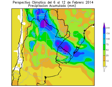 Perspectiva agroclimática del 6 al 12 de febrero de 2014: moderado calor y precipitaciones