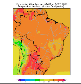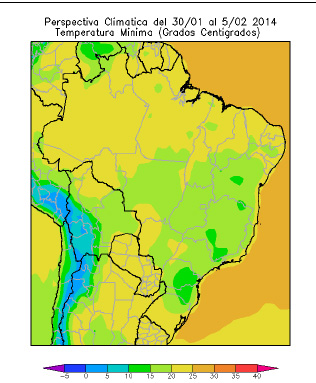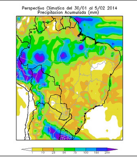 Perspectiva agroclimática para el Brasil del 30 de enero al 5 de febrero de 2014: moderada oscilación térmica y precipitaciones dispersas