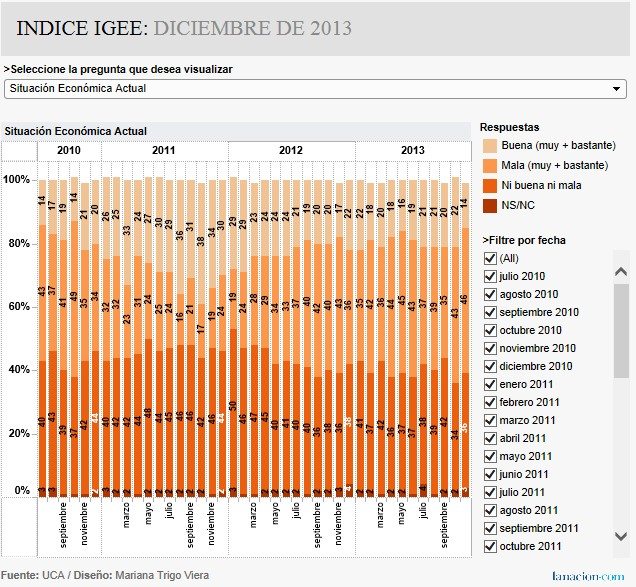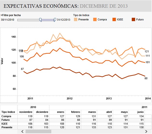 A fines de diciembre, el relevamiento del índice general de expectativas económicas de la UCA y TNS-Gallup mostraba que el 45% de la población creía que la situación era "muy o bastante mala". Y nadie creía que las cosas irían mejor. El 70% pensaba que 2014 sería igual o peor que 2013. Casi uno de cada tres creía que las cosas estarían peor en los próximos seis meses.