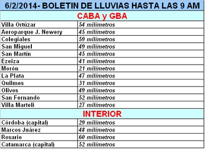 Posteriormente durante la madrugada del jueves 6 de febrero, las abundantes lluvias pasaron a ser lo más significativo, lluvias que prácticamente no han cesado sobre la Capital Federal y el conurbano y que lamentablemente han afectado con fuerza a las zonas inundadas del noroeste de Buenos Aires.