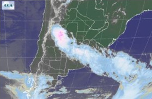 La continuidad de una estructura nubosa como la que muestra la Figura fue y es posible por: 1) un continuo ingreso de humedad debido a vientos del sector norte y 2) mecanismos dinámicos que favorecen los procesos de lluvias (frentes cuasi estacionarios y centros de baja presión en niveles altos de la atmósfera), por lo tanto, un cambio en estos dos factores sería necesario para pensar en otra circulación y el cese de las lluvias.
