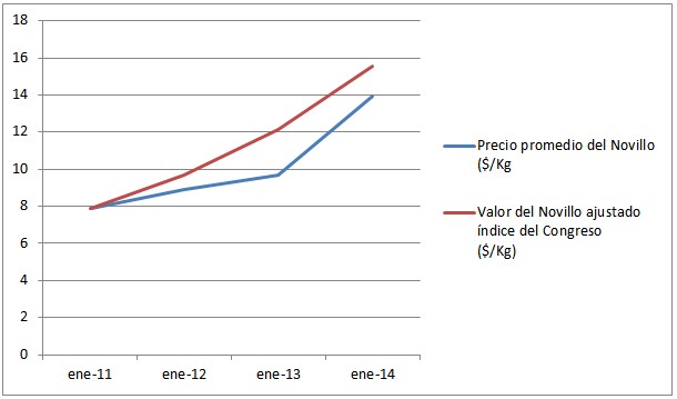 Precio del novillo ajustado por el índice del Congreso ($/Kg) |