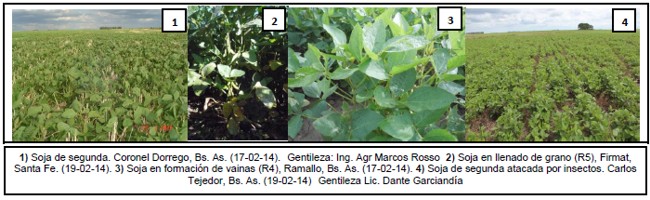 En lo que respecta a estado sanitario, podemos decir que se realizaron numerosas aplicaciones de insecticidas y en muchos casos los tratamientos no fueron efectivos. Hoy por hoy, el productor está abocado al monitoreo de enfermedades de fin de ciclo (principalmente mancha marrón y mancha ojo de rana) y en muchos casos se están realizando aplicaciones preventivas, siempre y cuando el suelo permita el tránsito de maquinarias. Similar situación se releva en el Centro-Este de Entre Ríos, en donde las reiteradas precipitaciones y los días nublados promueven la aparición de enfermedades. Con lo cual, se están realizando los controles y aplicaciones pertinentes con el fin de mantener el buen estado del cultivo. El grueso de cuadros de soja de primera se encuentra desde R3 a R5 (inicio de fructificación a comienzo de llenado de granos) con rindes esperados que se ubican desde los 20 hasta los 35 qq/Ha. Finalmente, podemos mencionar que en el oeste de Buenos Aires si bien relevan mermas de rinde potencial por la falta de humedad, el cultivo ha logrado recuperarse con las lluvias de febrero y hoy presenta condiciones de regulares a buenas. En contraposición, el norte pampeano sufrió aún más la falta de humedad durante diciembre y enero. Sumado a esto los registros durante el mes de febrero no han sido tan abundantes como para brindar una recuperación efectiva en el cultivo de soja.