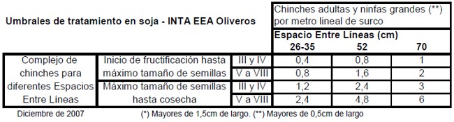 Ante eventuales ataques de chinches en cultivos de soja de primera y segunda durante las próximas semanas, se sugiere recorrer lotes periódicamente teniendo en cuenta que esta plaga succiona los granos en formación por medio de su aparato bucal chupador. Las picaduras del insecto impiden el normal desarrollo de semillas chicas, originando vainas vacías. En semillas de mayor desarrollo, causan deformaciones, necrosis y manchas oscuras. En los cultivos con alta infestación de chinches, los ataques muy severos producen el fenómeno de retención foliar, permaneciendo las hojas en las plantas hasta que se produce su caída por efecto de las primeras heladas.