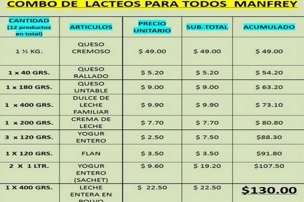 La actividad se realizará de 10 a 14 hs., en el barrio 30 Viviendas – Casa 12. Es importante destacar que se trata de un combo de productos de 1º marca como Manfrey, cuyos precios son de un 40% menos que en las góndolas de los supermercados.