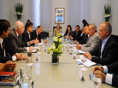 El ministro Casamiquela junto a su equipo de trabajo, los gobernadores y ministros de producción de Río Negro, Neuquén y Chubut, y los representantes del BID