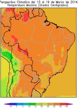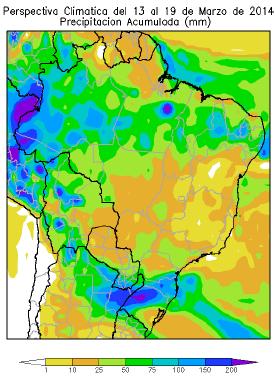 Perspectiva Agroclimática para el Brasil del 13 al 19 de marzo de 2014: Ascenso térmico y precipitaciones seguidos por la disminución de la temperatura