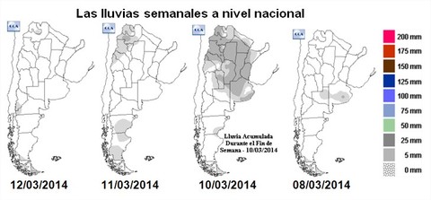 Lluvias y tormentas dejaron durante el domingo pasado (9 de marzo) entre 8 y 35 mm en la región núcleo. Los montos superiores a 30 mm se registraron en las estaciones de Irigoyen, Godeken, Gral. Pinto e Idiazabal. El noroeste bonaerense en general fue el más beneficiado con estas lluvias de moderada intensidad ya que fue la zona más rezagada de las tormentas durante todo el desarrollo de los cultivos de verano.