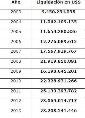 La liquidación de divisas de las empresas del sector en los últimos años fue: