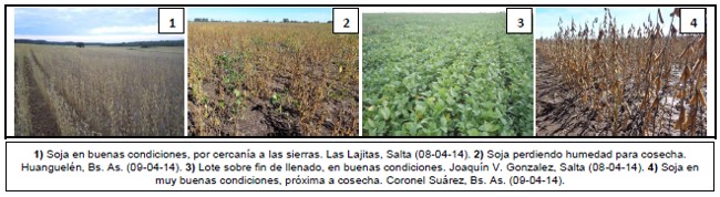 Este abundante caudal de agua generó excesos hídricos en muchos lotes que se encontraban en condición de capacidad de campo, pero también agravó anegamientos en cuadros saturados por las abundantes lluvias acumuladas desde febrero y provocó el desborde de varios ríos y arroyos. En consecuencia, la recolección se vio interrumpida en un momento clave, dado que gran parte de esta superficie afectada presentaba un elevado porcentaje de cuadros en condiciones de cosecha; considerando las características de la planta de soja, una vez que comiencen a secarse las vainas se corre el riesgo de perder rendimiento por la apertura y desgrane de las mismas.