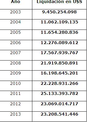 La liquidación de divisas de las empresas del sector en los últimos años fue: