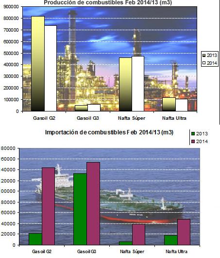 Por otra parte, en febrero la producción de naftas y gasoil retrocedió 5.6 por ciento respecto al mismo mes del año anterior. En consecuencia se debió importar el doble que en 2013 para abastecer el consumo interno.