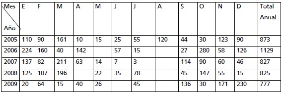 Tabla 3. Precipitaciones mensuales correspondientes a las campañas 2005/2009