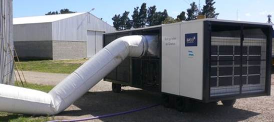 Sin embargo, no siempre es posible utilizar la aireación de forma eficiente para reducir la temperatura del granel. En regiones geográficas o estaciones calurosas no disponemos de aire ambiente frío como para enfriar los granos por debajo de una temperatura razonable. Esto ocurre en la zona centro-norte del país durante gran parte del año y también en otras regiones durante la época estival.