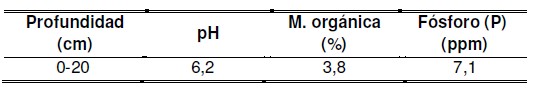 Tabla 1: Análisis de suelo a la siembra en la capa superficial (0-20 cm).