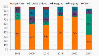 2) Gran incremento de la participación de Estados Unidos durante 2013.